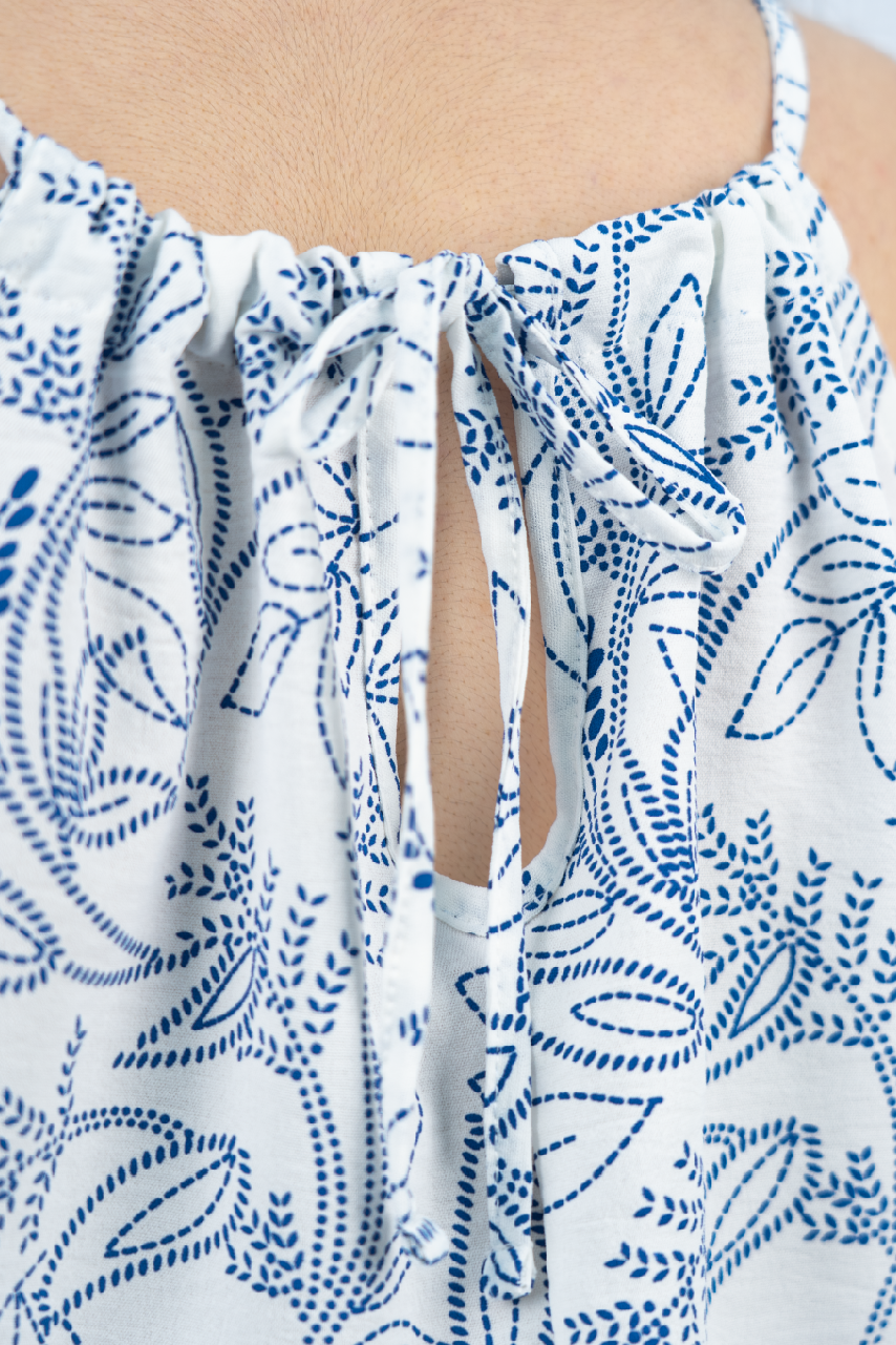 Confeccionada en tela Viena estampada, ligera y de tacto suave, ideal para aportar frescura y movimiento. Su caída fluida realza el diseño y permite un ajuste cómodo que se adapta con naturalidad a la silueta. Los estampados aportan carácter y versatilidad, convirtiéndola en una prenda femenina, dinámica y fácil de combinar en distintos estilos.