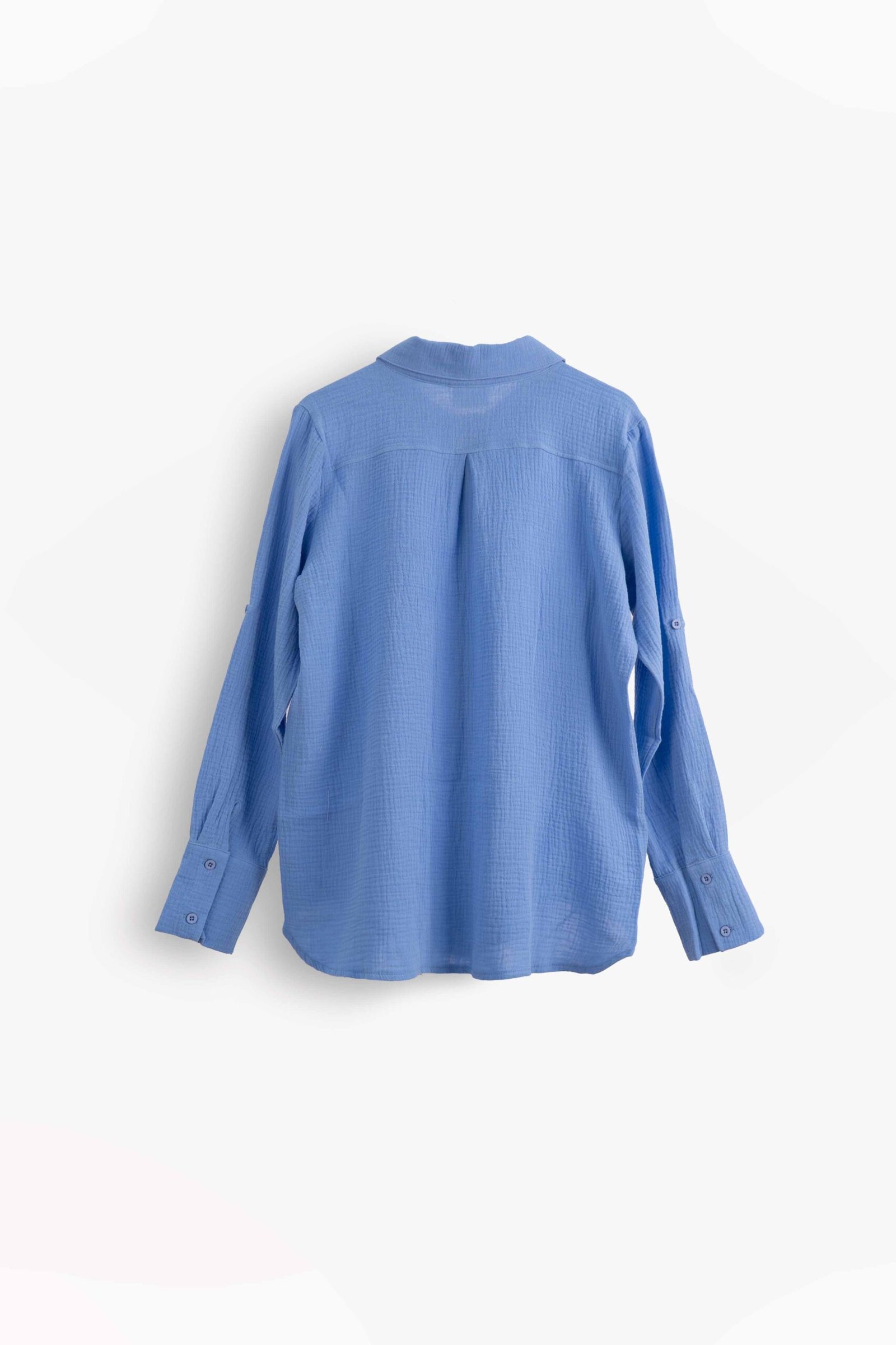 Elaborada en algodón cotton, suave y respirable. Diseño con bolsillo frontal, mangas regulables y corte relajado, ideal para looks casuales.