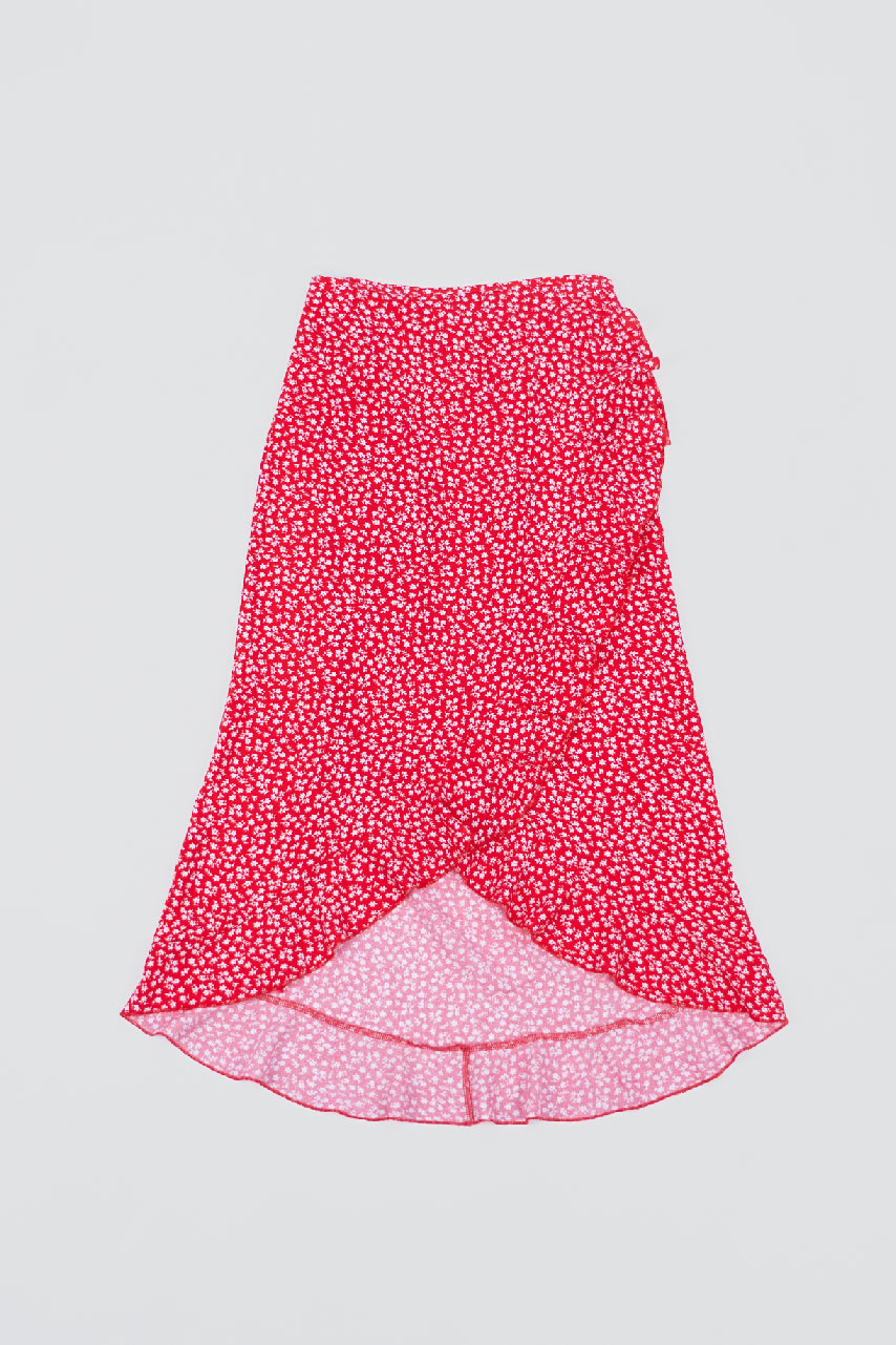 Confeccionada en chalis estampado, de textura suave y caída fluida. Su diseño floral aporta un aire femenino y fresco, mientras que su movimiento ligero brinda comodidad y libertad al caminar.
