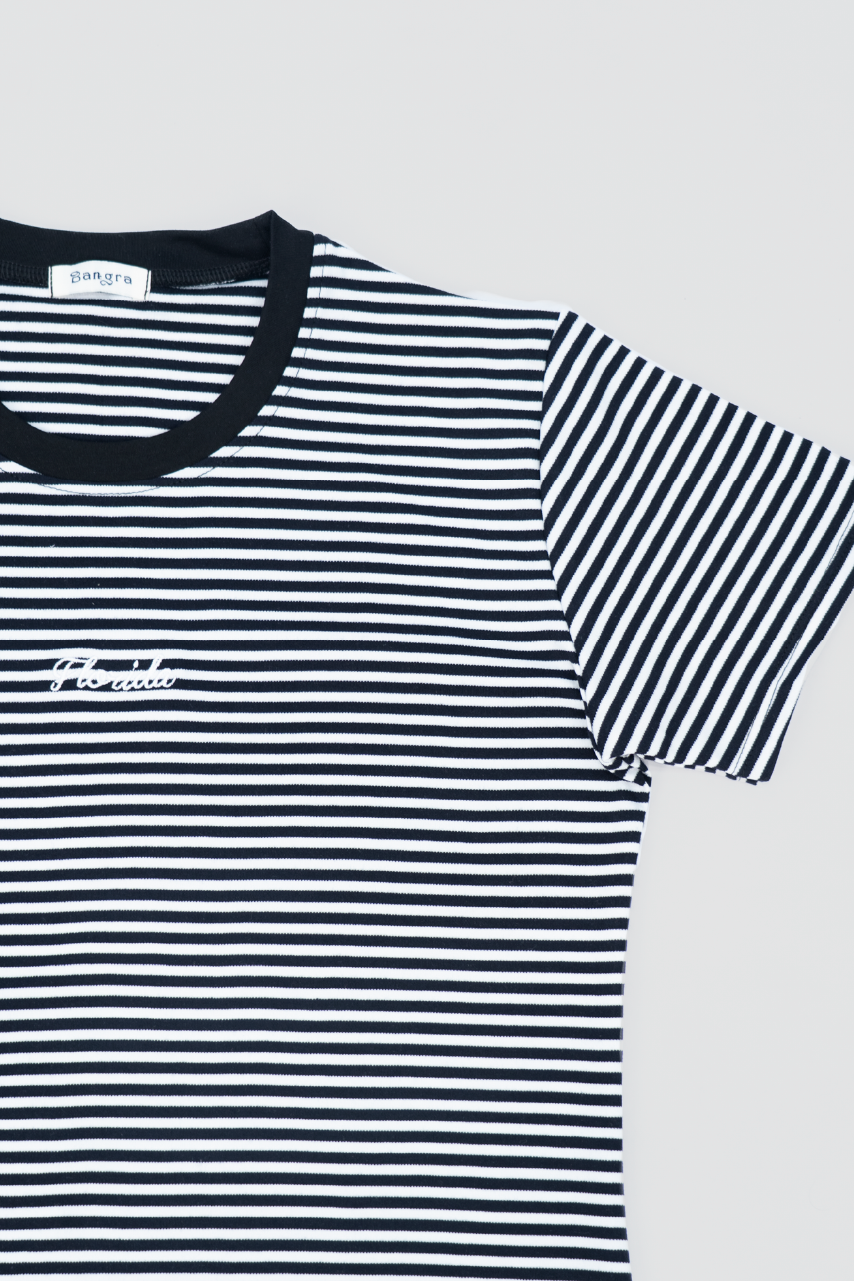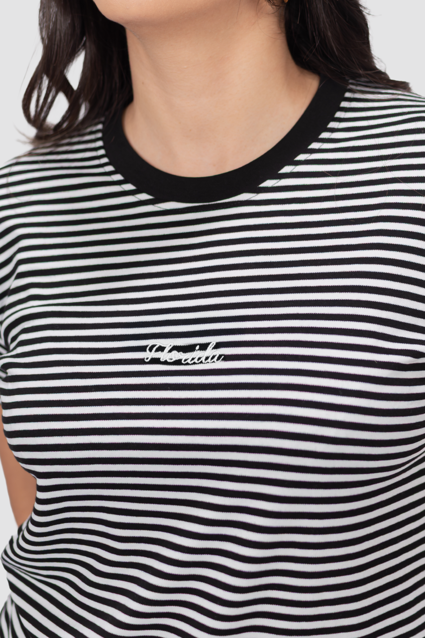 Elaborado en Gamuza Listada de textura suave y cómoda, diseño a rayas horizontales con bordado frontal «Florida» que aporta un detalle distintivo idela para un look casual y versátil.